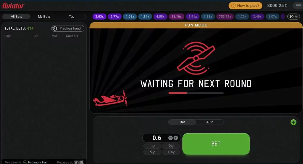 - اضغط على زر “وضع الرهان” وشاهد الطائرة تحلق. سيزداد المضاعف مع الرحلة، ومهمتك هي الضغط على زر “استرداد الأموال” في الوقت المناسب لاسترداد رهانك بناءً على المضاعف الحالي.